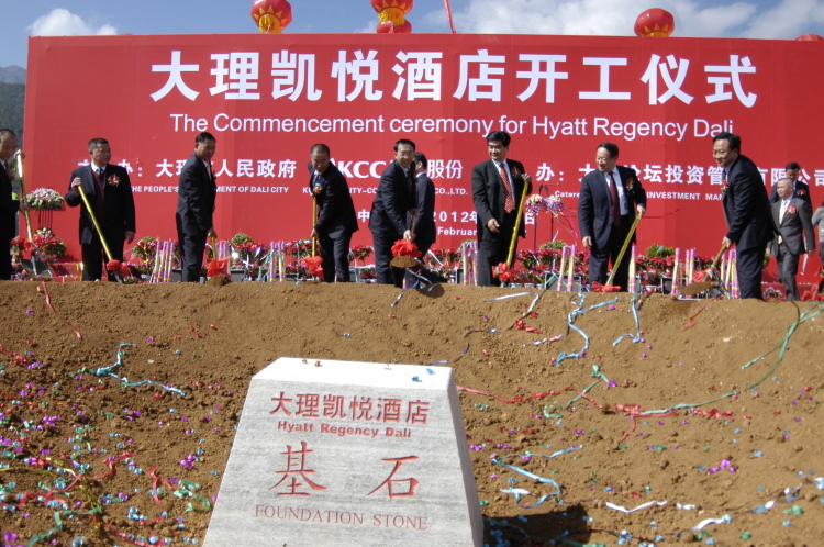 2012年2月21日,大理论坛﹒大理凯悦酒店开工仪式在项目主体位置(大凤路以西,清碧溪以南)隆重举行。参加仪式的有大理州委、州政府,市委、市政府及有关部门领导;昆明城建房地产开发股份有限公司董事长李捷、副董事长孙寅平先生等投资方代表;凯悦酒店集团中国区副总裁严庆光先生;昆明瑞山公司、怡成公司以及木森公司等合作单位代表。