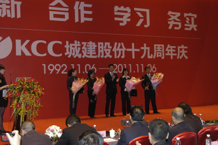 2011年11月6日,KCC城建股份全体员工与合作单位代表400余人欢聚抚仙湖畔,在新落成的抚仙湖悦椿酒店会议中心隆重庆祝KCC19周岁生日,原市建委老领导段茂成先生也应邀参加了庆典活动并致辞。