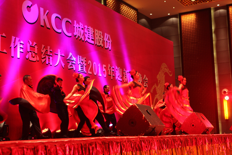 2015年1月22日下午16:00时,KCC城建股份在澄江抚仙湖悦椿度假酒店召开2014年度工作总结大会暨迎新春文艺晚会,公司各部门(公司)以及合作单位代表共约360人参加了会议。
