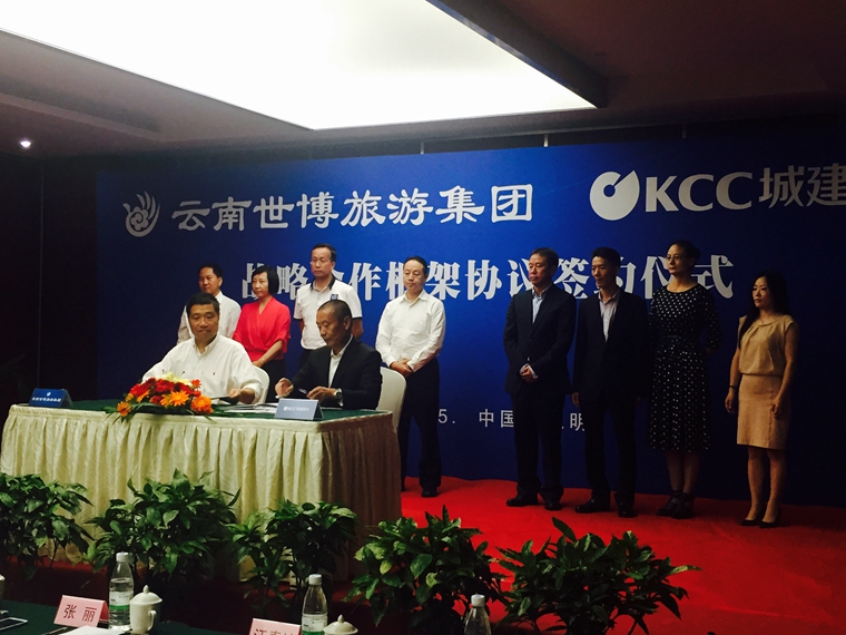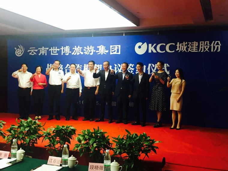 2016年7月15日下午,云南世博旅游集团与昆明城建股份公司战略合作框架协议签约仪式在云南世博花园酒店举行。此次签约,标志着双方为加快旅游产业发展,整合优质资源,为加快产品开发、品牌建设、营销管理等方面的模式创新奠定了基础,对双方今后实现优势互补、共赢发展起到重要推动作用。