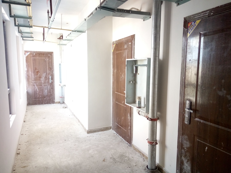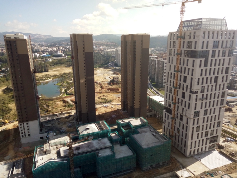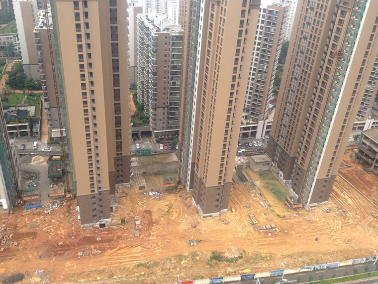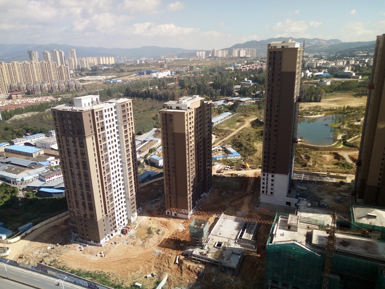 (二)公共部分装修(楼梯间、走道及电梯前室):住宅部分:2-4栋、9-11栋、13、14栋地砖铺贴及墙面第一道腻子大面完成;2-4栋电梯前室吊顶龙骨大面完成,4栋已开始吊顶石膏板封顶施工。写字楼部分:1栋完成22-29层地砖铺贴。