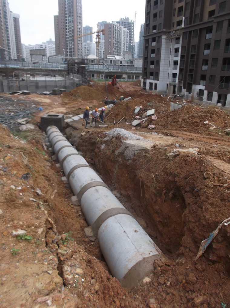 (七)室外雨污管施工:1-2#库完成60%;4#库完成40%;3#库完成10%;2号库至4号库DN1000泄洪管已连通;5号路沿线已完成;13栋、14栋化粪池已安装;5栋后雨、污水支管正在施工。